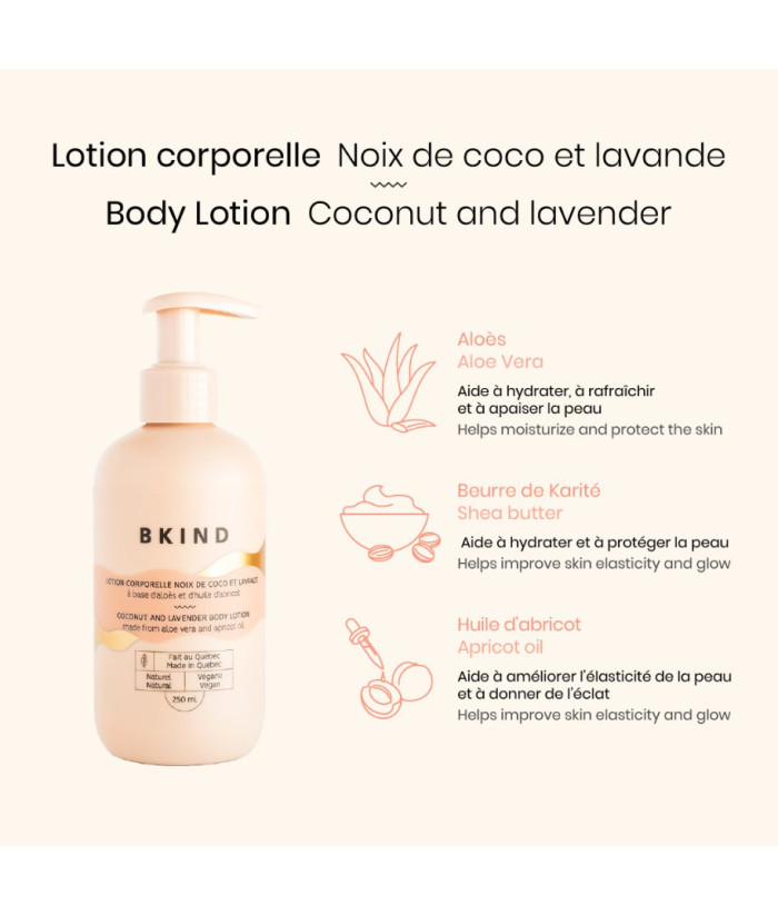 À la fois légère, douce et nourrissante, notre lotion corporelle à base d'aloès et d'huile d'abricot hydrate votre peau en profondeur tout en lui laissant un agréable fini soyeux et lumineux.