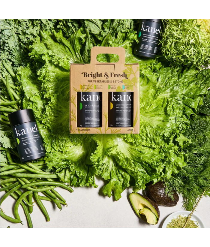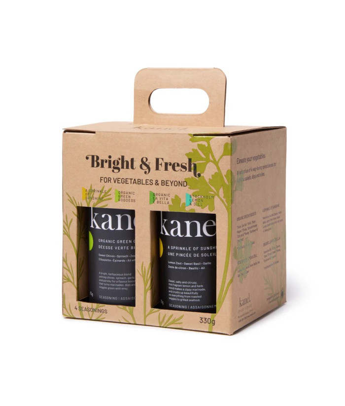 Cette collection réunit quatre de leurs meilleurs mélanges, parfaits pour faire ressortir le meilleur des légumes rôtis, des salades croquantes et des trempettes et vinaigrettes pleines de pep. Quelle que soit votre envie, ces saveurs inspirées du potager égayeront chaque bouchée. Le tout vient dans une boîte avec poignée tellement pratique — idéal pour dire oui à tous les BBQ et festins dans la cour !