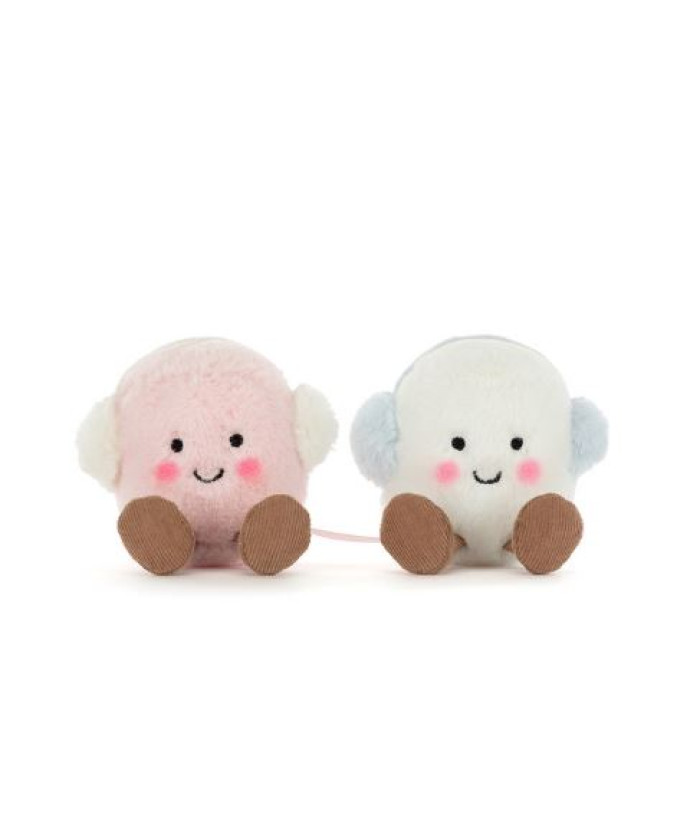 ''Les guimauves roses et blanches Amuseables Toastie sont inséparables, surtout quand il fait froid. Leur idée de l'aventure ? Une couverture, un bon livre et une bonne tasse de thé chaud.
