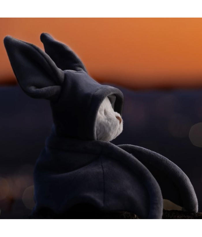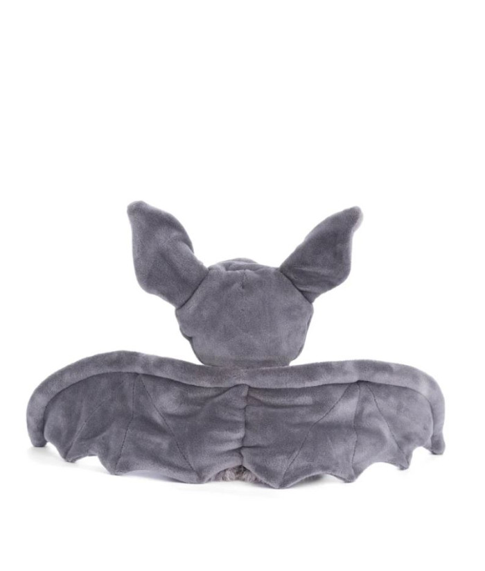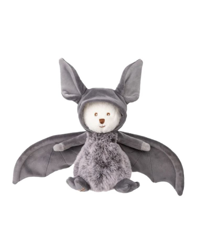 Voici Ziggy chauve-souris, notre ours adoré, avec son côté ludique et effrayant ! Dotée d'ailes en velours anthracite ultra-douces, elle est une peluche parfaitement dimensionnée pour les petites mains et prête pour d'innombrables aventures d'Halloween.