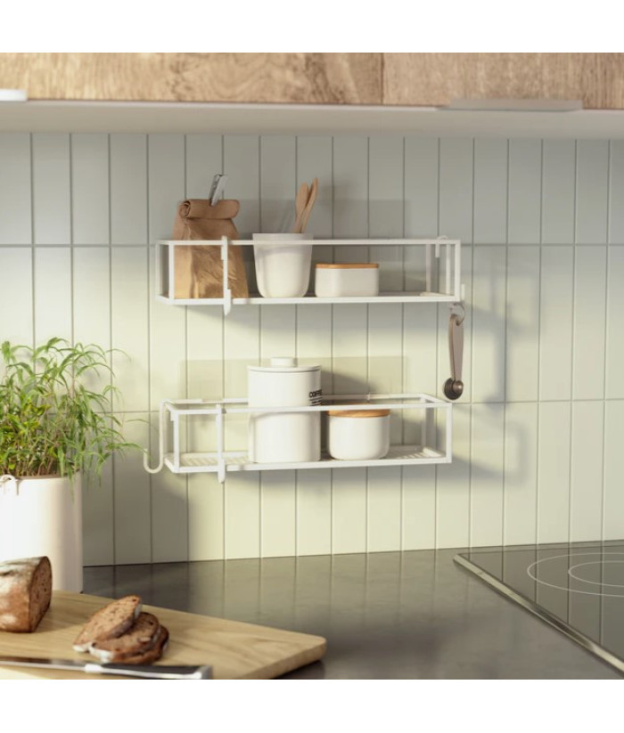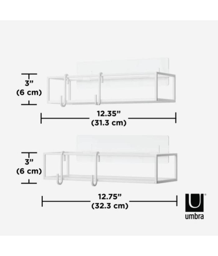 Bénéficiez d'un espace de rangement surélevé dans votre douche ou au-dessus de votre baignoire grâce aux étagères Cubiko. Ces paniers de rangement emboîtables pour douche n'abîment pas les murs et arborent un design moderne en fil courbé, afin qu'ils s'intègrent facilement à différents styles de décoration. Facile à poser, Cubiko est livré avec des bandes adhésives étanches qui n'abîment pas les murs et peuvent être fixées à plusieurs surfaces telles que les carreaux, les murs secs, le béton, etc. (elles n'adhèrent pas aux surfaces poreuses). Chaque bac a une charge maximale de 10 lb (4,5 kg) et est fait de métal sans rouille. Livré avec deux crochets en métal pour accrocher les loufahs, de petites serviettes et plus encore.