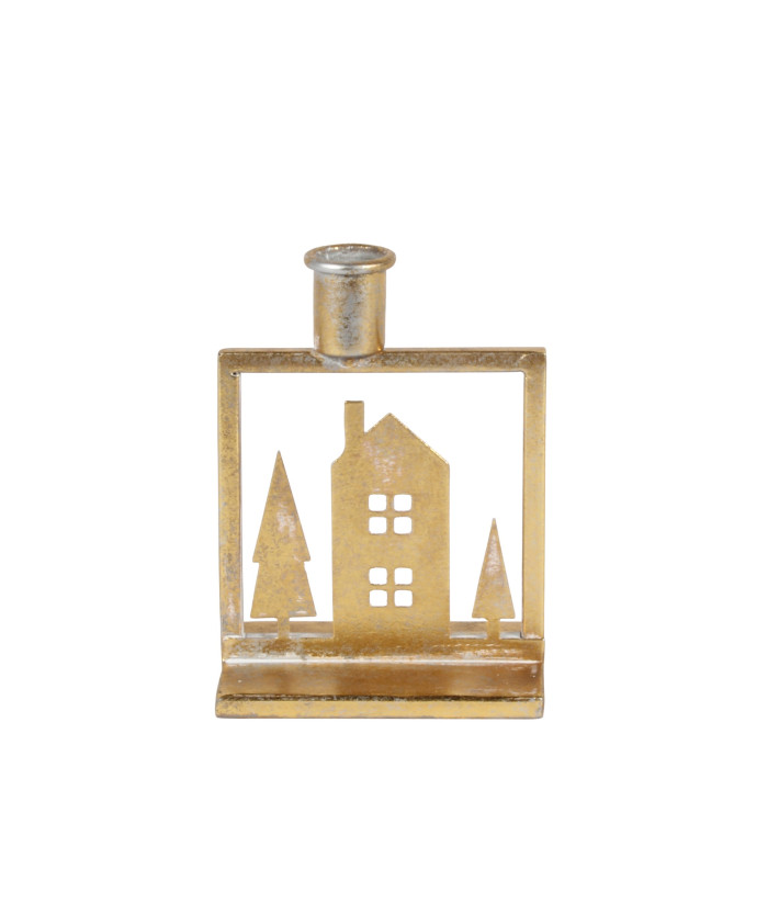 Finition dorée brossée, ce bougeoir de forme originale apporte une touche de chaleur à votre décor.